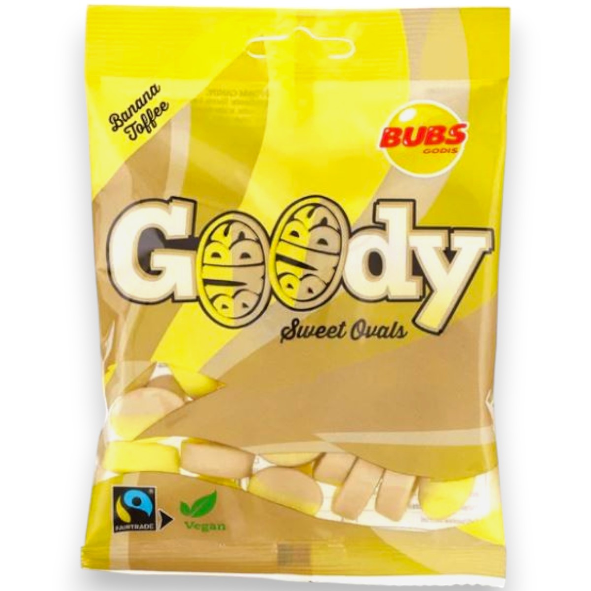 Les Bubs Banane Oval , ce sont de délicieux bonbons suédois au goût irrésistible de banane . Leur texture douce et moelleuse offre un plaisir fondant en bouche, tandis que leur saveur fruitée intense rappelle la gourmandise des bananes bien mûres.