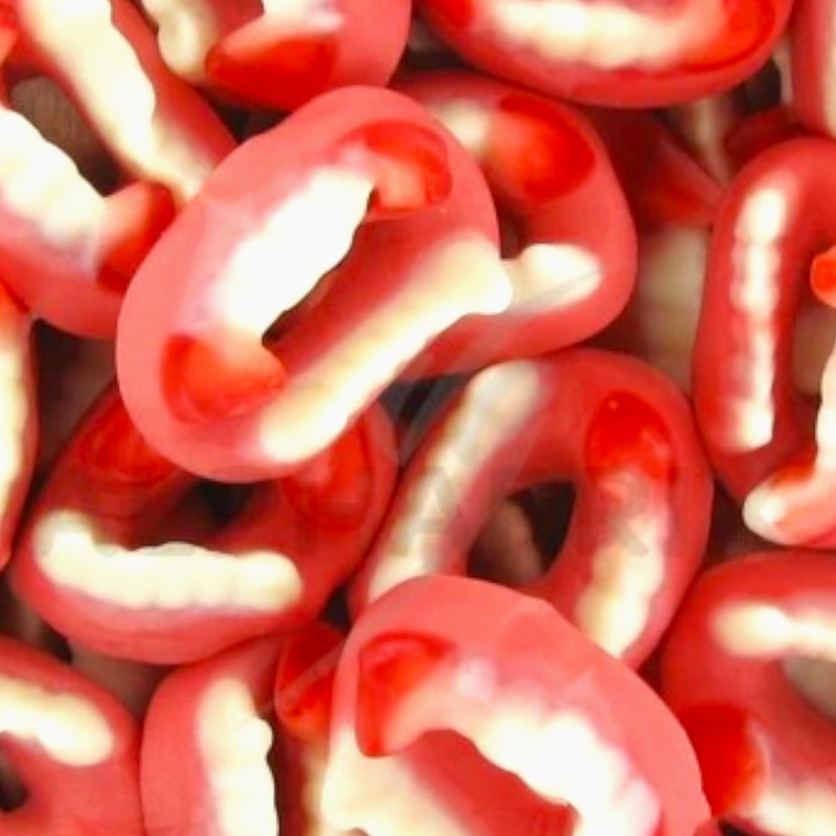 Sirop de glucose, sucre, gélatine, acidifiant : acide citrique, acide lactique, stabilisant : sorbitol, gélifiant : pectine, arôme, colorants : carmin, huile végétale, agent d'enrobage : cire d'abeille, cire de carnauba.