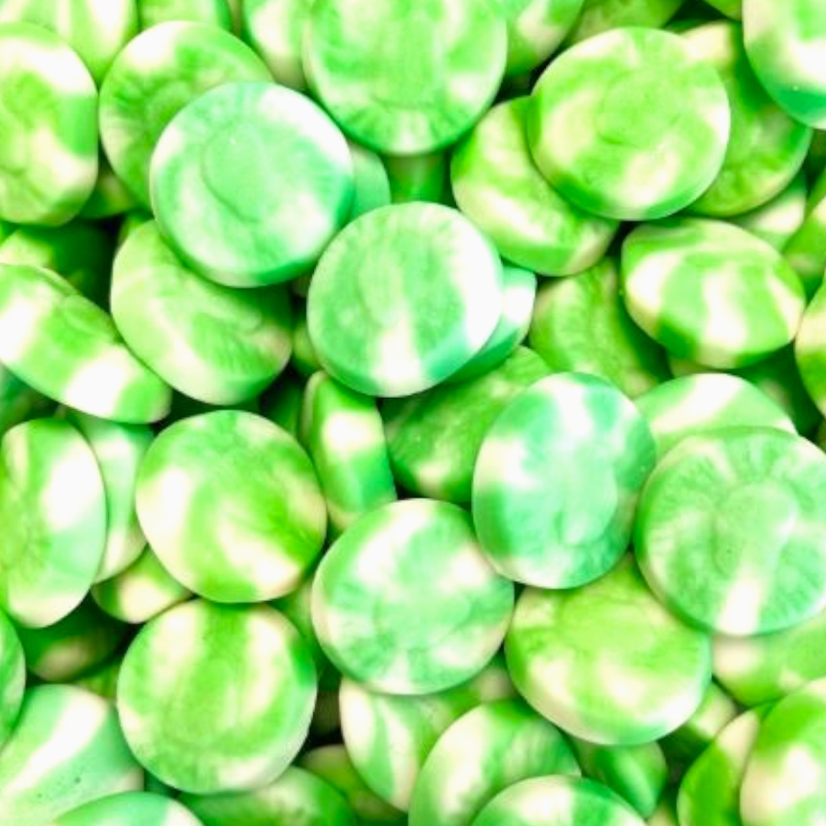 Le Kiwi Twist est un bonbon qui a le goût de kiwi et a une texture moelleuse.