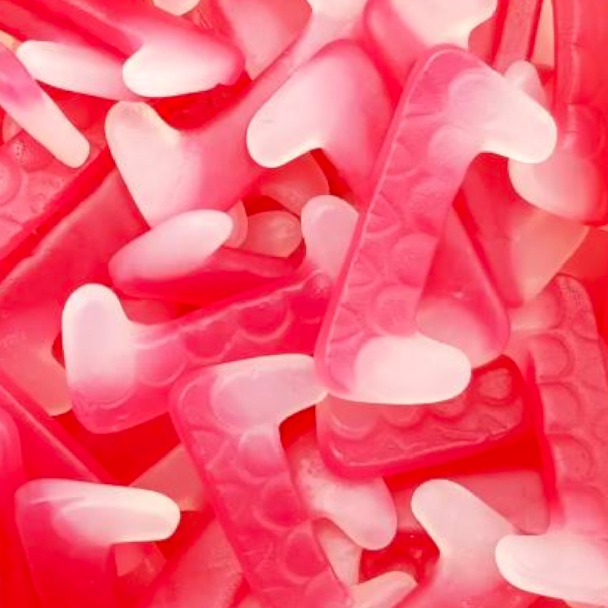 Sucre ; sirop de glucose ; amidon de BLÉ ; eau ; amidon de maïs modifié ; amidon de pomme de terre modifié ; acidifiants (acide acétique, acide lactique) ; arôme, concentré de jus de carotte noir ; huile végétale (cocos), agents d'enrobage (cire d'abeille, cire de carnauba).
